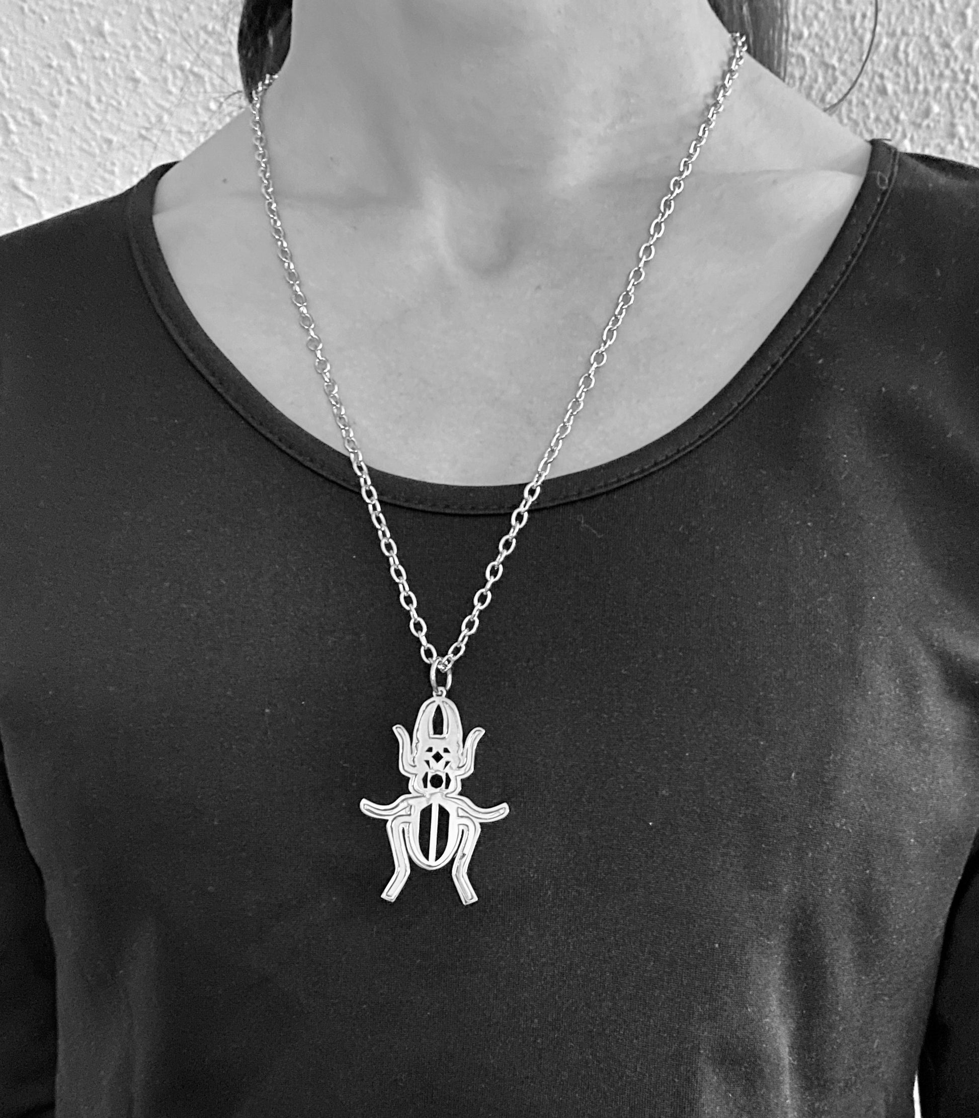 Material: cadena de oro gruesa y escarabajo en corte láser geométrico de latón.